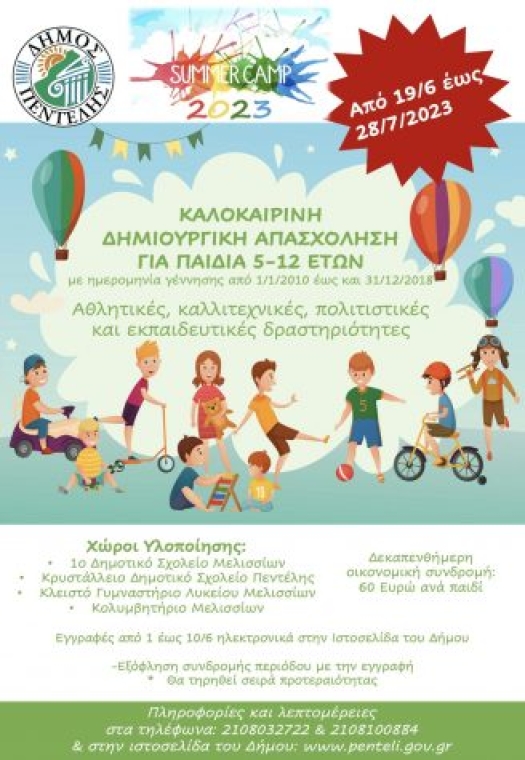 Οικονομική συνδρομή για τους Δημότες ή Κατοίκους του Δήμου Πεντέλης: 50,00€ ανά παιδί για κάθε περίοδο συμμετοχής των δύο εβδομάδων.