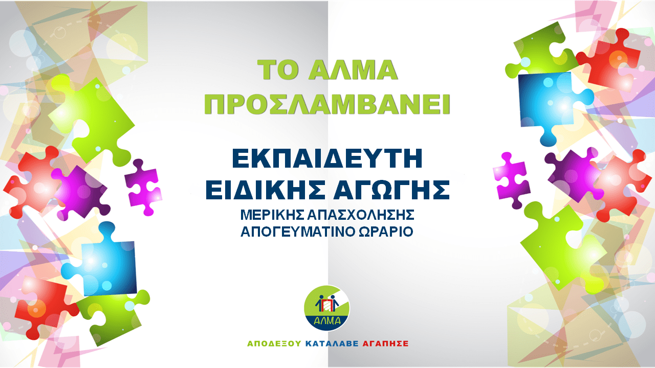 Ο Πανελλήνιος Σύλλογος Προσαρμοσμένων Δραστηριοτήτων “ΑΛΜΑ” είναι μη κερδοσκοπικό σωματείο (Αρ. Απ. 4533/1996) που ιδρύθηκε το 1996 από ομάδα επιστημόνων διαφόρων ειδικοτήτων και εργαζομένων στην ειδική αγωγή. Ο Σύλλογος υλοποιεί εκπαιδευτικά, αθλητικά, πολιτιστικά και ψυχαγωγικά προγράμματα για παιδιά και ενήλικες με αναπηρία (νοητική υστέρηση, αυτισμό) με στόχο την ανάπτυξη δεξιοτήτων, την κοινωνικοποίηση και τη δημιουργική απασχόλησή τους στον ελεύθερο χρόνο τους. Σήμερα, λειτουργεί Κέντρο Ημέρας για άτομα με ΔΑΦ (αυτισμό) και Στέγες Υποστηριζόμενης Διαβίωσης για άτομα με νοητική υστέρηση.