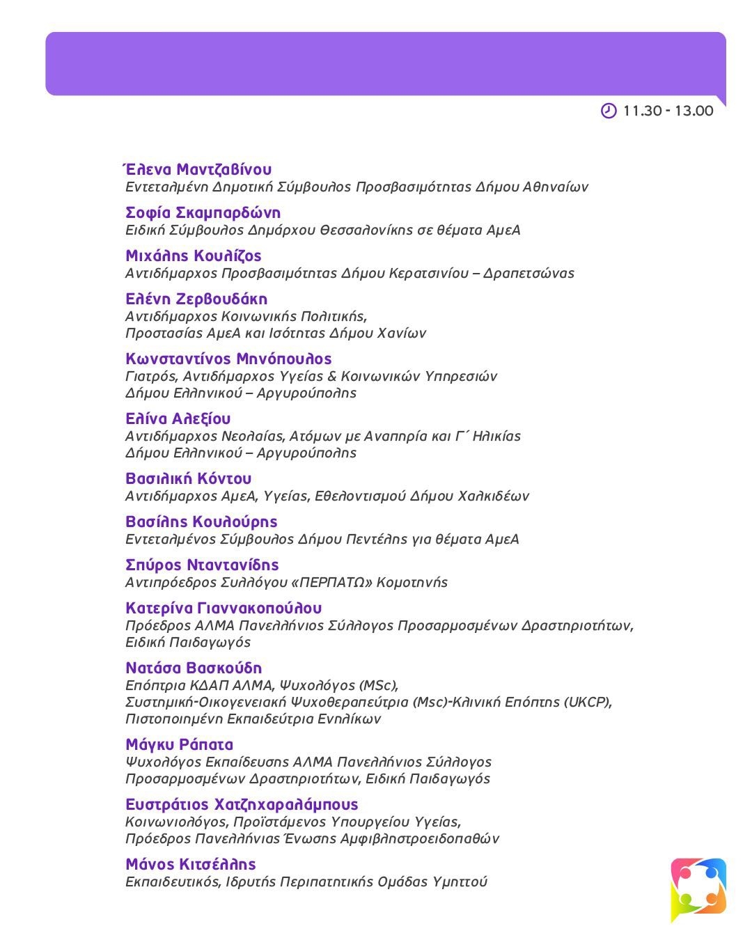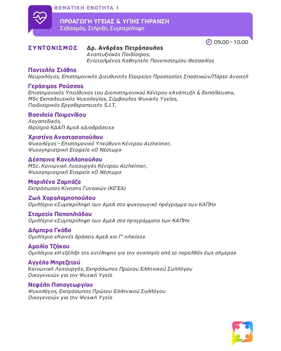 - Προαγωγή Υγείας & Υγιής Γήρανση: Σεβασμός, Στήριξη, Συμπερίληψη. Συντονισμός: ∆ρ. Ανδρέας Πετρόπουλος.