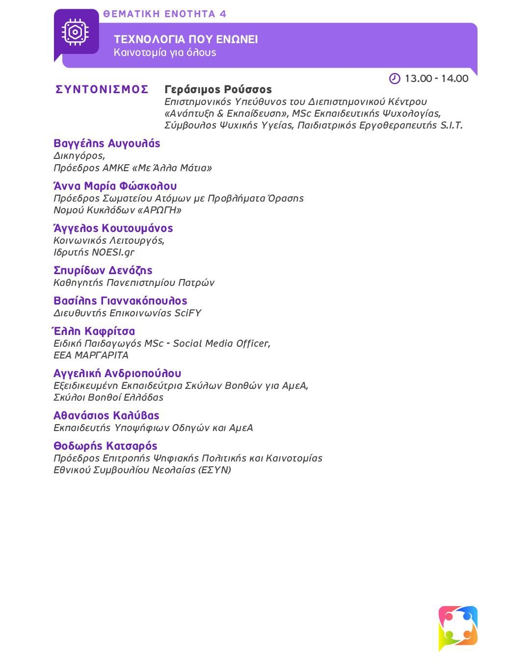 - Τεχνολογία που ενώνει: Καινοτομία για όλους. Συντονισμός: Γεράσιµος Ρούσσος.