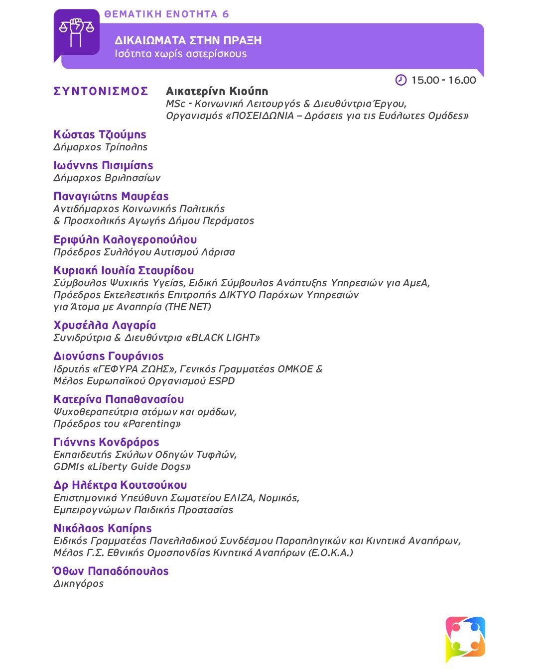 - Δικαιώματα στην Πράξη: Ισότητα χωρίς αστερίσκους. Συντονισμός: Αικατερίνη Κιούπη.